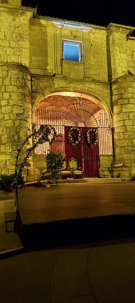 La representación se realiza en el pórtico de la Iglesia y el público se distribuye en la esplanada urbanizada que existe frente a ella y desde donde se contempla una magnífica vista de los campos de cereal del territorio y al fondo la Sierra de Atapuerca.  Los vecinos disponen sillas y bancos para que el público pueda asistir mas cómodamente a la representación y cuya entrada es gratuita.